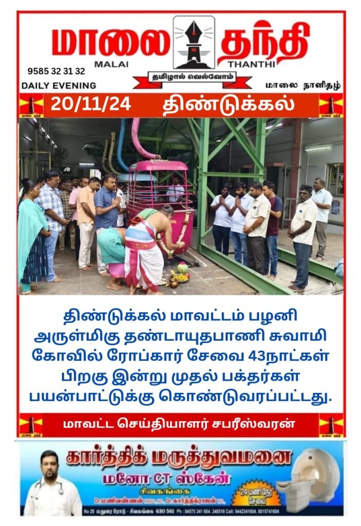 BREAKING NEWS பழனி அருள்மிகு தண்டாயுதபாணி கோவில் ரோப்கார் சேவை 43நாட்கள் பிறகு இன்று துவக்கம் 1 min read Spread the love Continue Reading Previous மானாமதுரை கீழக்கரையில் அகல் விளக்குகள் விற்பனைக்காக தயார்நிலையில்Next ராமநாதபுரத்தில் மழைக்காலத்தில் வெள்ளப்பெருக்கு குறித்தும் அவசரகால உதவி எண் வெளியீடு More Stories 1 min read BREAKING NEWS தேவகோட்டை ஸ்ரீ மீனாட்சி சுந்தரேஸ்வரர் ஆலயத்தில்தெய்வாணை முருகன் திருக்கல்யாணம் நடைபெற்றது 1 min read BREAKING NEWS நாகர்கோவில் மாநகராட்சி 16-வது வார்டில் கான்கிரீட் தளம் அமைக்கும் பணியினை மேயர் ரெ.மகேஷ். தொடங்கிவைத்தார். 1 min read BREAKING NEWS பரமக்குடியில் நடைப்பெற்ற தேவேந்திர பண்பாட்டு கழக செயலாளர் தேர்தலில் ஆ,ராமகிருஷ்ணன் வெற்றி