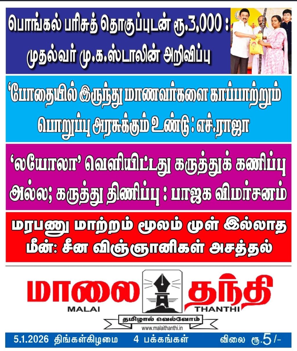 E-PAPER 05/01/2026-malaithanthi_e-paper# 1 min read Spread the love Continue Reading Previous 04/01/2026-malaithanthi_e-paper#Next 06/01/2026-malaithanthi_e-paper# More Stories 1 min read E-PAPER 14/03/2026-malaithanthi_e-paper# 1 min read E-PAPER 13/03/2026-malaithanthi_e-paper# 1 min read E-PAPER 11/03/2026-malaithanthi_e-paper#