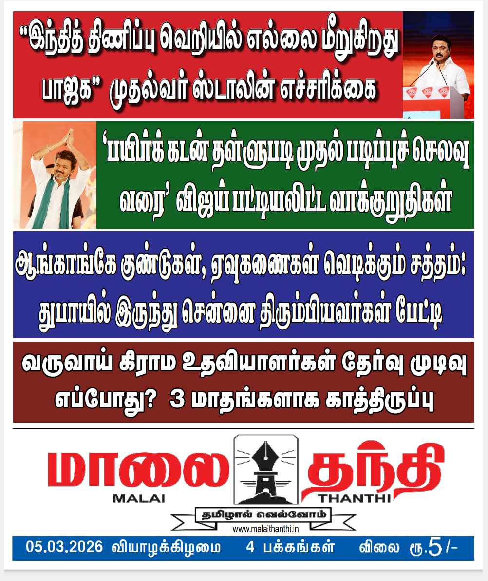 E-PAPER 05/03/2026-malaithanthi_e-paper# 1 min read Spread the love Continue Reading Previous 04/03/2026-malaithanthi_e-paper#Next 06/03/2026-malaithanthi_e-paper# More Stories 1 min read E-PAPER 14/03/2026-malaithanthi_e-paper# 1 min read E-PAPER 13/03/2026-malaithanthi_e-paper# 1 min read E-PAPER 11/03/2026-malaithanthi_e-paper#