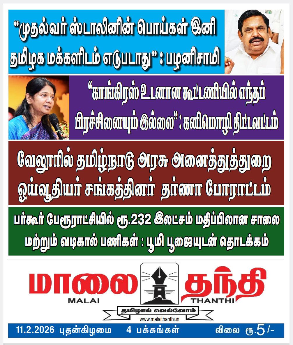 E-PAPER 11/02/2026- malai thanthi_e-paper# 1 min read Spread the love Continue Reading Previous 10/02/2025-malaithanthi_e-paper#Next 12/02/2026- Malaithanthi_e-paper# More Stories 1 min read E-PAPER 14/03/2026-malaithanthi_e-paper# 1 min read E-PAPER 13/03/2026-malaithanthi_e-paper# 1 min read E-PAPER 11/03/2026-malaithanthi_e-paper#