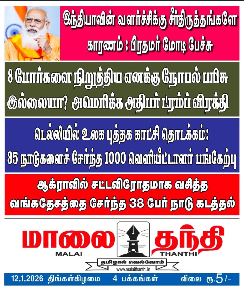 E-PAPER 12/01/2026-malaithanthi_e-paper# 1 min read Spread the love Continue Reading Previous 11/01/2026-malaithanthi_e-paper#Next 13/01/2026-malaithanthi_e-paper# More Stories 1 min read E-PAPER 14/03/2026-malaithanthi_e-paper# 1 min read E-PAPER 13/03/2026-malaithanthi_e-paper# 1 min read E-PAPER 11/03/2026-malaithanthi_e-paper#