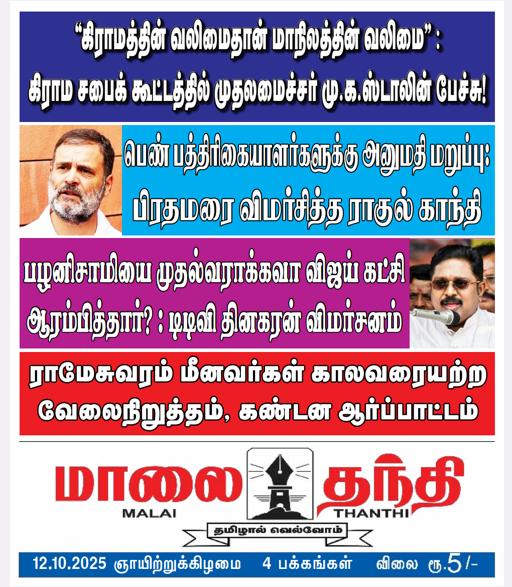 E-PAPER 12/10/2025-malaithanthi_e-paper# 1 min read Spread the love Continue Reading Previous 11/10/2025- malai thanthi_e-paper#Next 13/10/2025-malaithanthi_e-paper# More Stories 1 min read E-PAPER 14/03/2026-malaithanthi_e-paper# 1 min read E-PAPER 13/03/2026-malaithanthi_e-paper# 1 min read E-PAPER 11/03/2026-malaithanthi_e-paper#