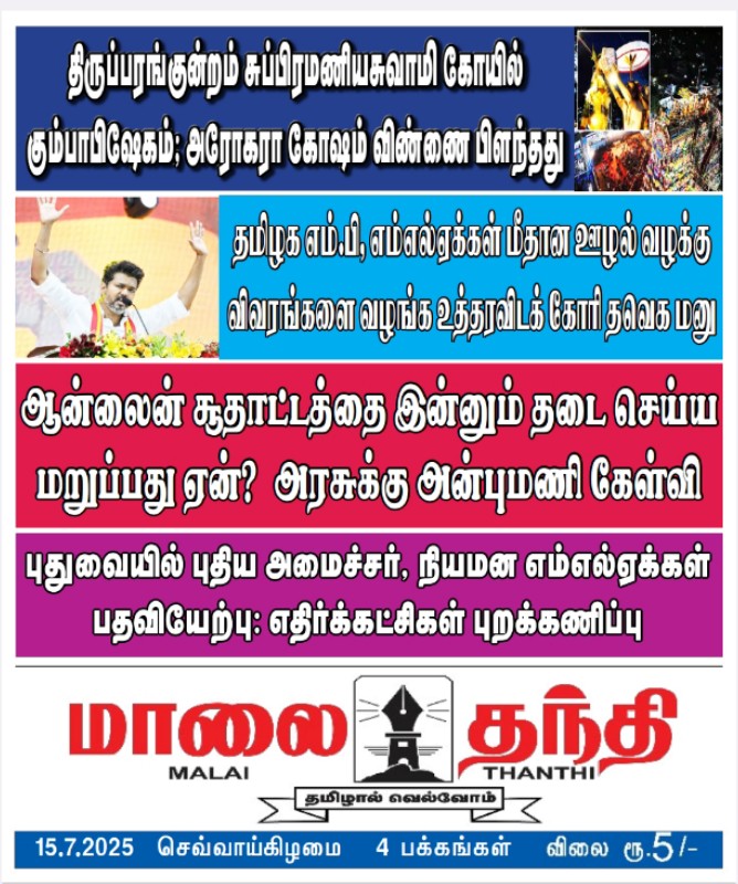 E-PAPER 15/07/2025-malaithanthi_ePaper# 1 min read Spread the love Continue Reading Previous 14/07/2025-malaithanthi_ePaper#Next 16/07/2025-malaithanthi_ePaper# More Stories 1 min read E-PAPER 14/03/2026-malaithanthi_e-paper# 1 min read E-PAPER 13/03/2026-malaithanthi_e-paper# 1 min read E-PAPER 11/03/2026-malaithanthi_e-paper#