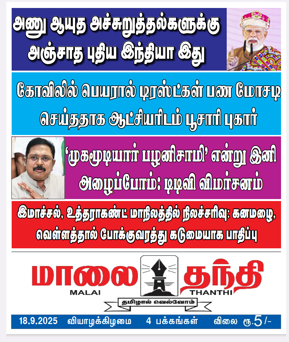 E-PAPER 18/09/2025-malaithanthi_e-paper# 1 min read Spread the love Continue Reading Previous 17/09/2025-malaithanthi_e-paper#Next 19/09/2025-malaithanthi_e-paper# More Stories 1 min read E-PAPER 14/03/2026-malaithanthi_e-paper# 1 min read E-PAPER 13/03/2026-malaithanthi_e-paper# 1 min read E-PAPER 11/03/2026-malaithanthi_e-paper#