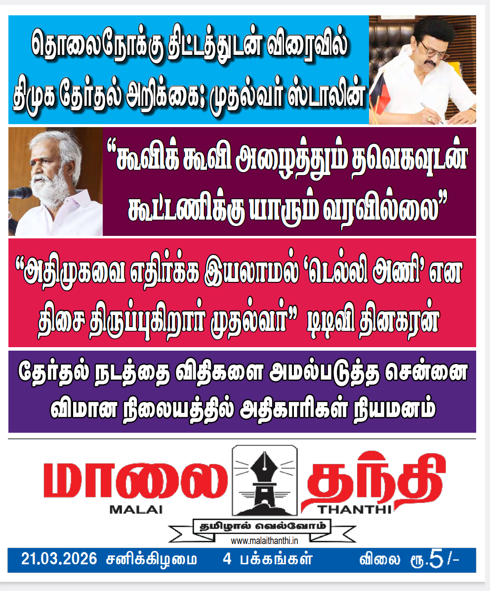 E-PAPER 21/03/2026-malaithanthi_e-paper# 1 min read Spread the love Continue Reading Previous 20/03/2026-malaithanthi_e-paper#Next 22/03/2026-malaithanthi_e-paper# More Stories 1 min read E-PAPER 14/04/2026-malaithanthi_e-paper# 1 min read E-PAPER 13/04/2026-malaithanthi_e-paper# 1 min read E-PAPER 12/04/2026-malaithanthi_e-paper#
