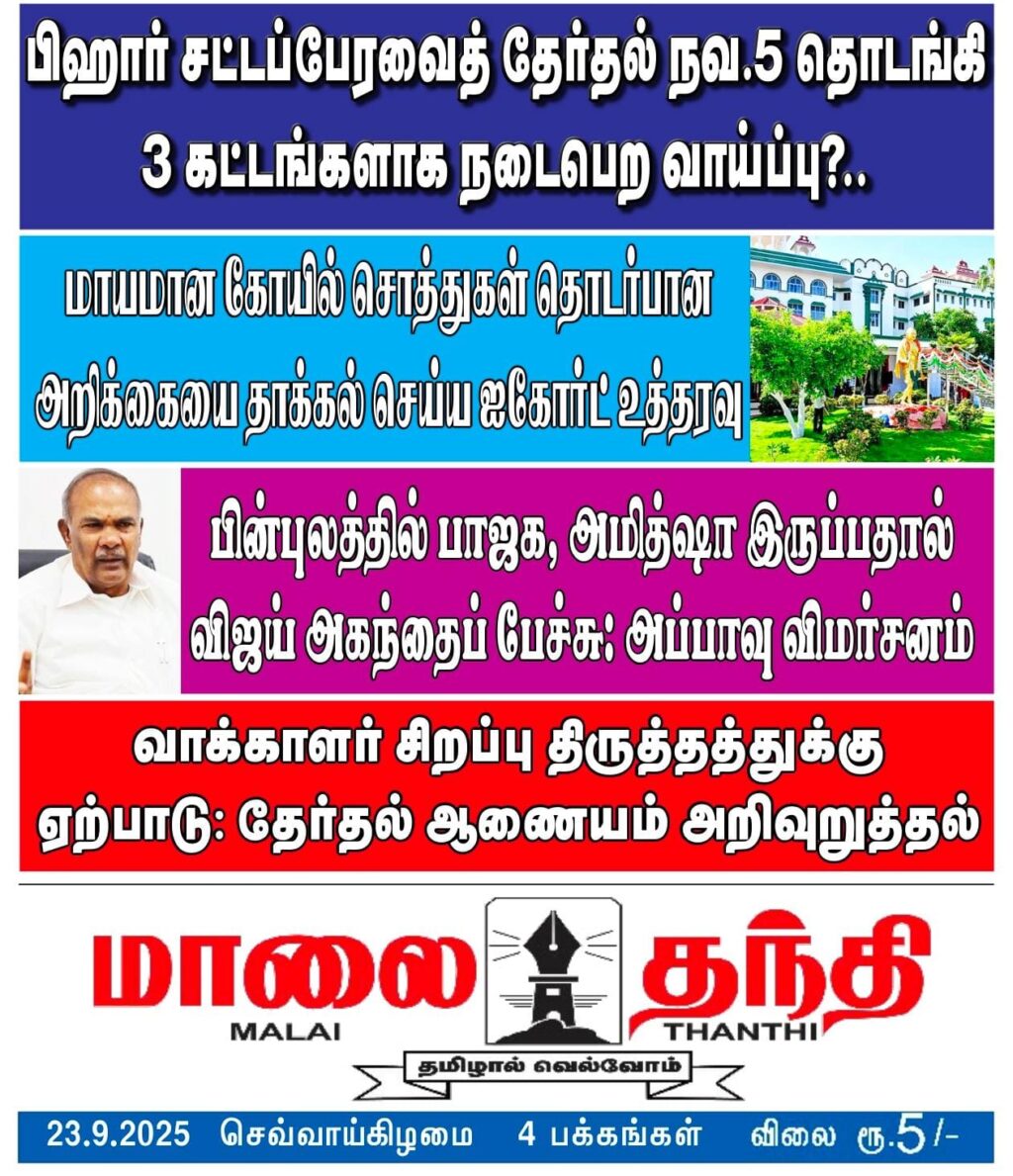 E-PAPER 23/09//2025- malaithanthi_e-paper# 1 min read Spread the love Continue Reading Previous 22/09/2025-malaithanthi_e-paper#Next 24/09/2025-malaithanthi_e-paper# More Stories 1 min read E-PAPER 14/03/2026-malaithanthi_e-paper# 1 min read E-PAPER 13/03/2026-malaithanthi_e-paper# 1 min read E-PAPER 11/03/2026-malaithanthi_e-paper#
