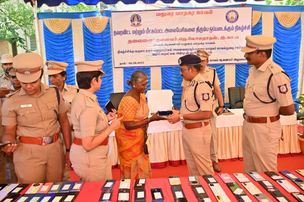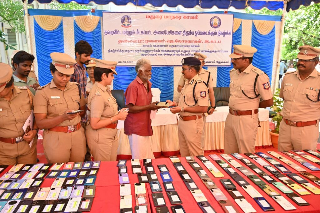 மதுரை மாநகர காவல் நிலைய எல்லைக்குட்பட்ட பகுதிகளில் செல்போன்கள் காணாமல் போனதாக பெறப்பட்ட புகார்களில் ஏற்கனவே 09.04.2025-ம் தேதி ரூ-41,70,000/- மதிப்புள்ள 278 செல்போன்கள் கண்டுபிடிக்கப்பட்டு உரிய நபர்களிடம் ஒப்படைக்கப்பட்டது.