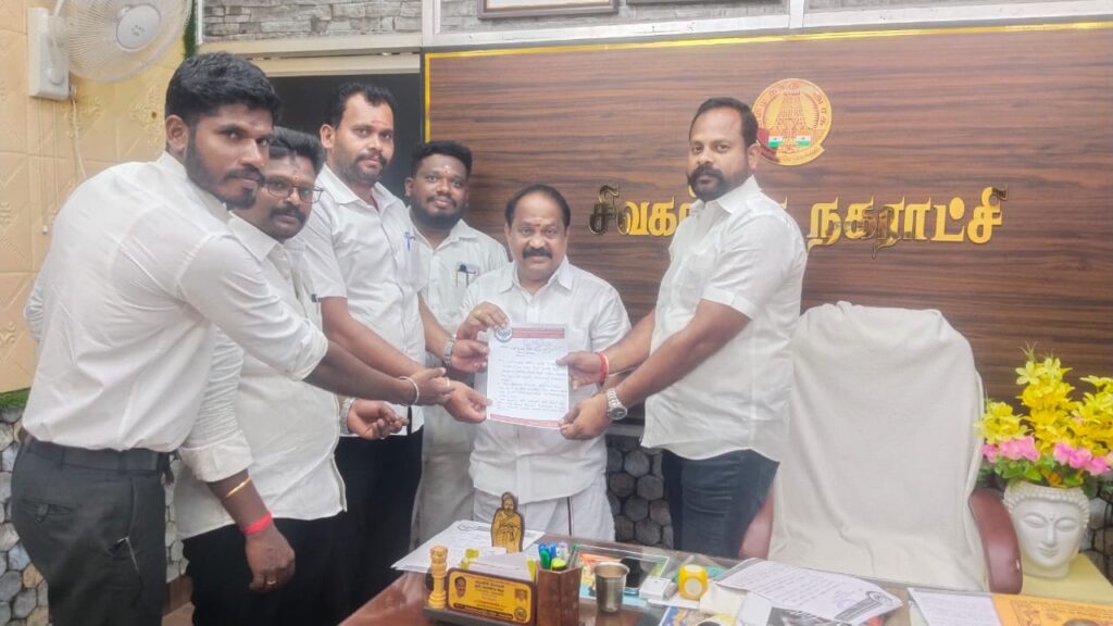 சிவகங்கை பொதுமக்கள் நலன் பாதுகாப்பு மற்றும் விழிப்புணர்வு சங்கம் சார்பில் சிவகங்கை நகர் மன்ற தலைவர் துரை ஆனந்திடம் கோரிக்கை மனு அளிக்கப்பட்டது