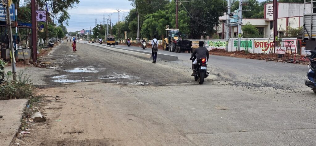 சிவகங்கை – மேலூர் நெடுஞ்சாலை சாலைப்பணிகள் மெத்தன போக்கு : பொதுமக்கள் கடும் அவதி !