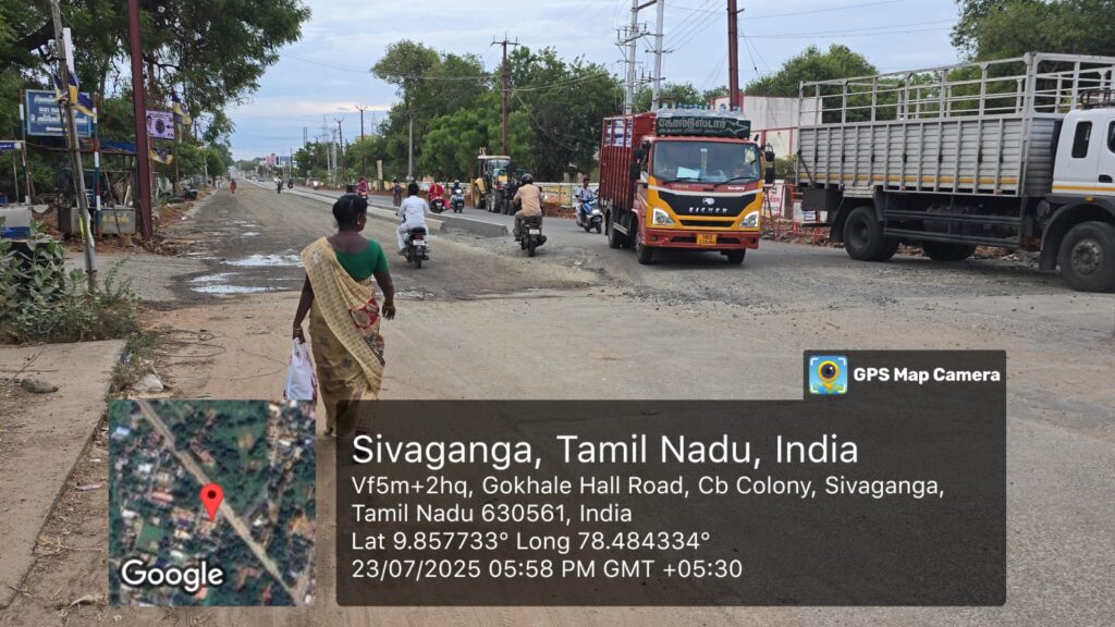 சிவகங்கை கோர்ட் வாசல் இருந்து மேலூர் செல்லும் சாலை பணிகள் முடிவடையாமல் அதிகாரிகள் அனுமதி வழங்காமல் தாமதம் செய்வதால் பொதுமக்களுக்கு இடையூறு ஏற்பட்டு வருகிறது வாகன ஓட்டிகள் விபத்துக்குள்ளாகும் அபாயமும் உள்ளது ஒப்பந்தக்காரர்கள் பணியை முடிக்க தயாராக உள்ள நிலையில் நெடுஞ்சாலை அரசு அதிகாரிகள் தாமதம் காட்டி வருவது மிக வருத்தம் அளிப்பதாகவும் ஒப்பந்தகாரர்கள் கூறி வருகின்றனர்.